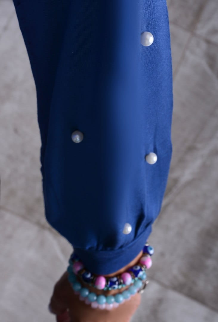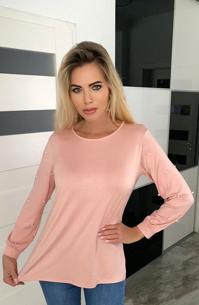 Bawełniana bluzka z perełkami na rękawkach P666P