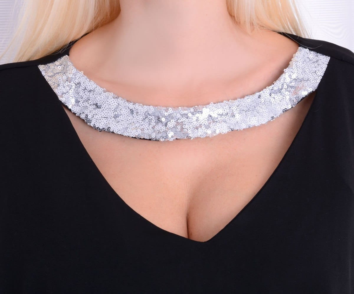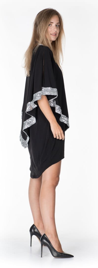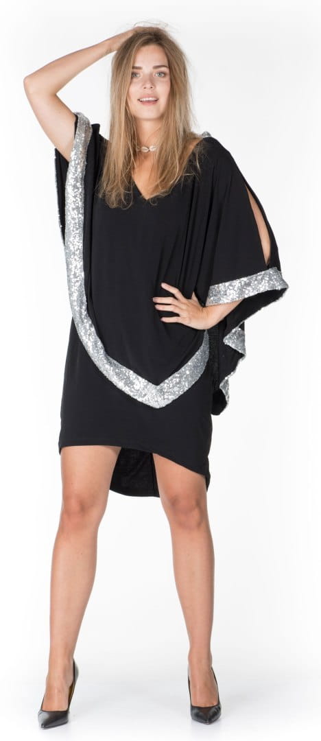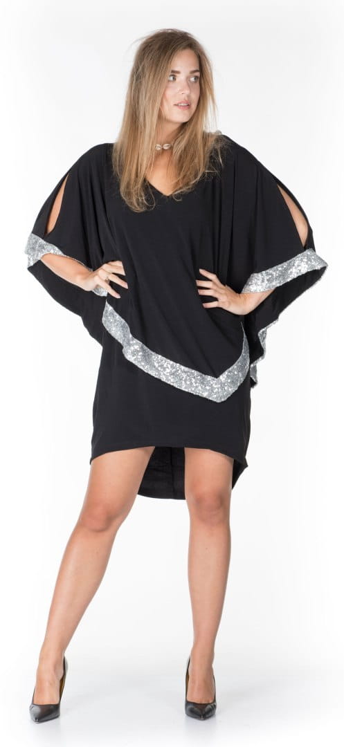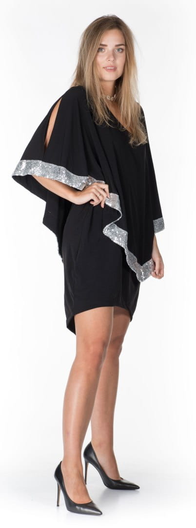 Prezentujemy Państwu NAJNOWSZĄ KOLEKCJĘ NAJMODNIEJSZEJ SUKIENKI TYPU "MAŁA CZARNA" Z CUDNYMI OZDOBNYMI RĘKAWAMI I PRZEPIĘKNYMI OZDOBAMI SREBRNYMI WSTAWKAMI