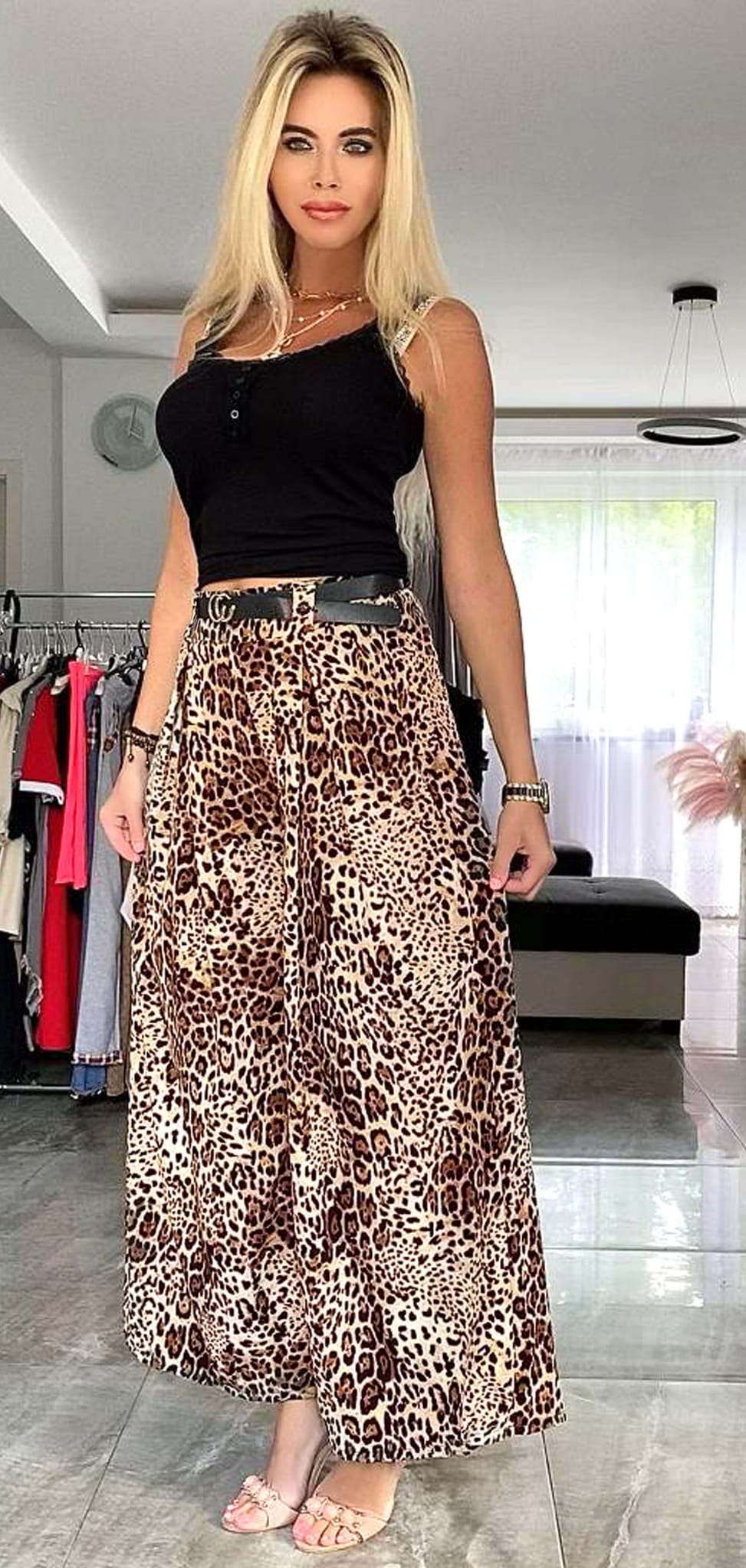 Spodnie panterka z paskiem Italy FB76